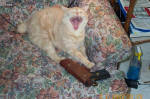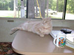 Bob the Cat. I found Bob in a junkyard while I was buying salvage air conditioners. It was love at first sight. Half Persian and half Manx, Bob was still attached to his mother and was small enough to sit in my closed hand. When we started home from the salvage yard and he popped up on the dashboard to see what was going on, I knew I had a winner. He has ruled me since! Bob is a great buddy, is a world traveler, is a hell of a mouser and is cute as heck. I thought the least I could do would be to give him his own web page. Enjoy. |