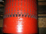| A closeup of the armature construction. This photo shows how the windings are bound together. The orange color is GE Glyptol dielectric paint. It greatly reduces the incidences of tracking. |
