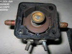 This photo shows the solenoid with the lid removed. Note the generally overheated and worn look. Also note how the plunger is sitting at an angle much deeper than it should. | |||||||