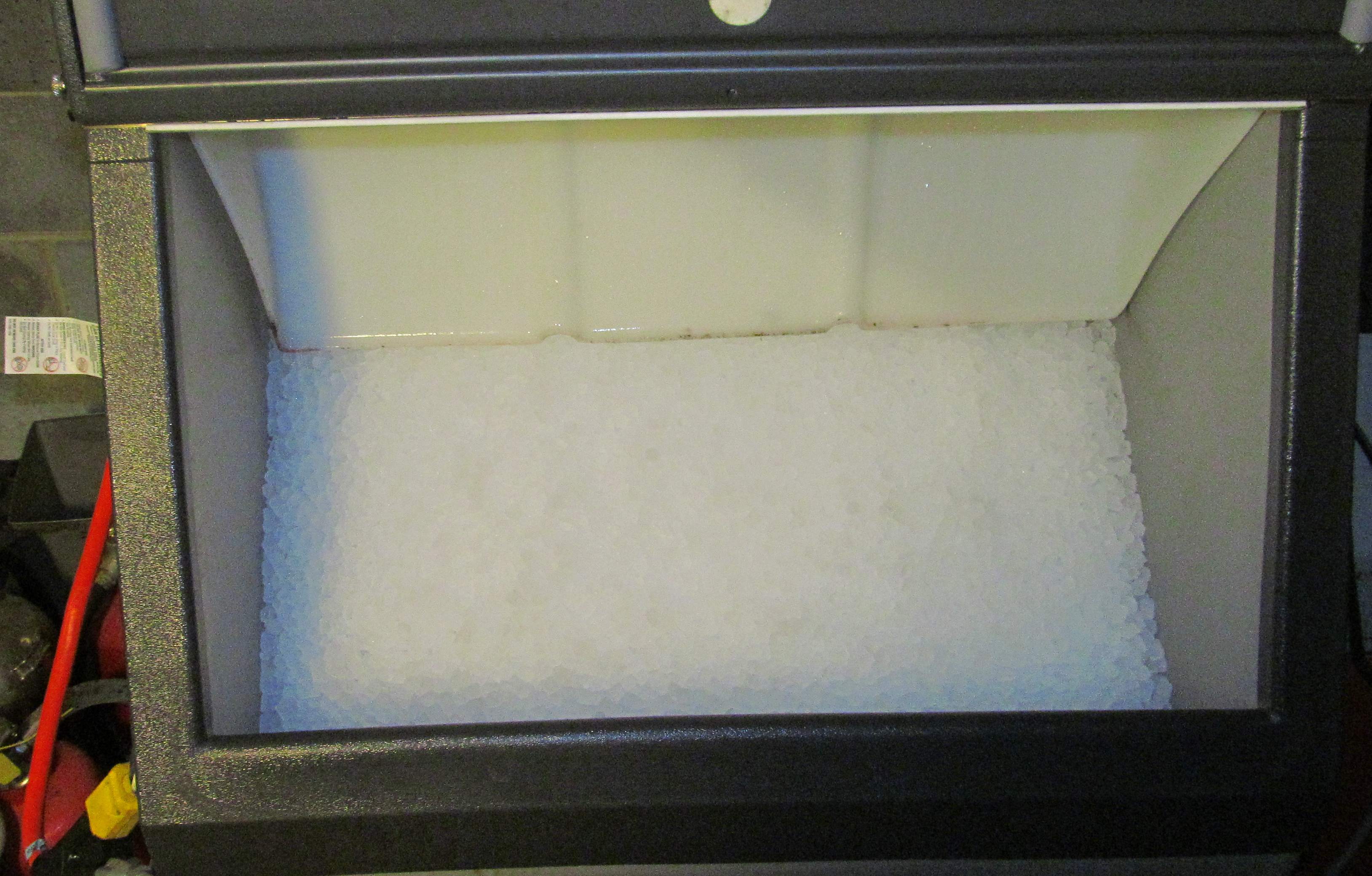 View of the ice bin full of ice