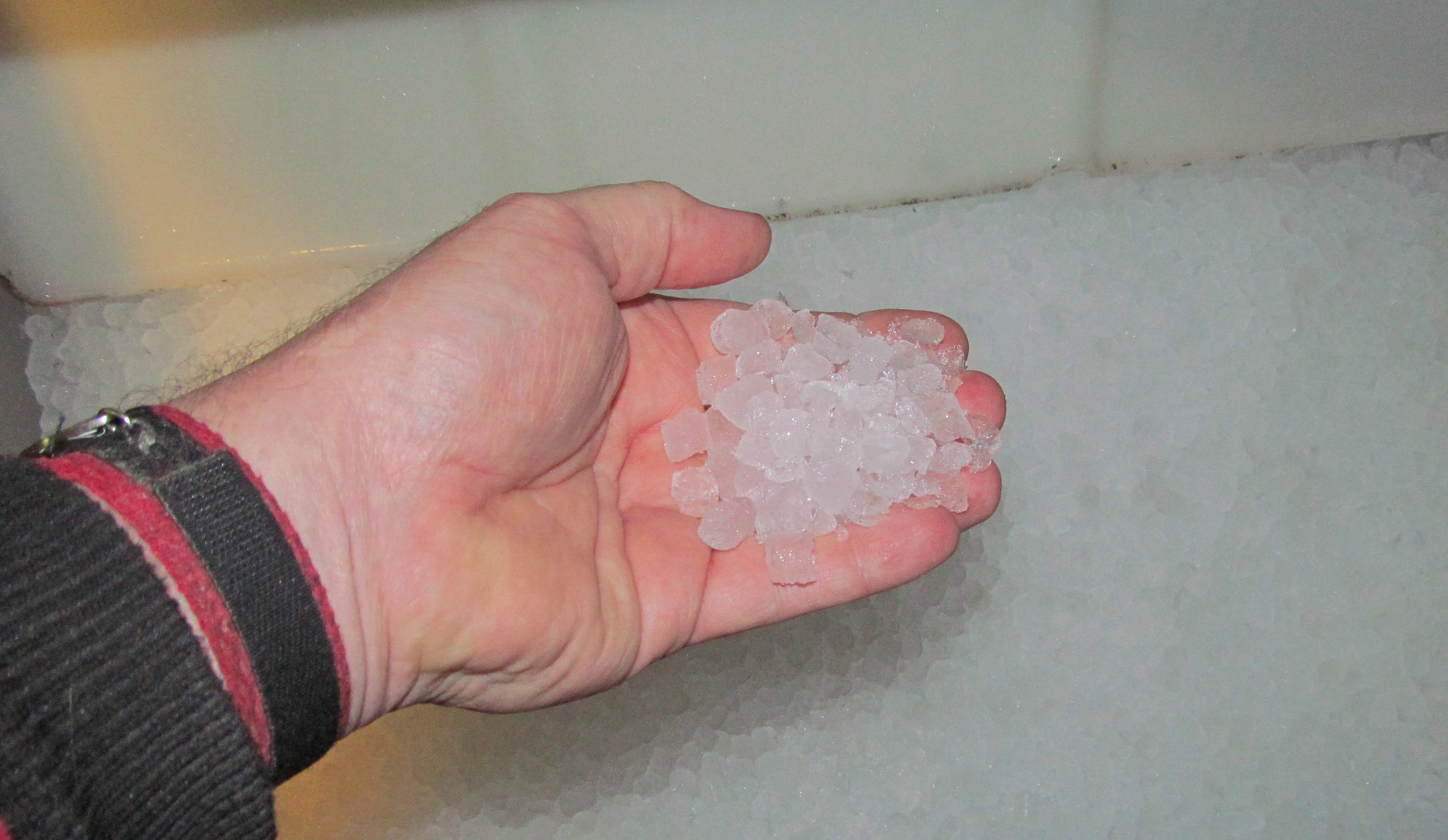 This photo shows the type of ice the machine makes. Crunchy pellets. Most customers prefer this kind of ice because it is easy to crunch on. And it packs tighter in the glass, requiring less product to fill the glass. It is the perfect ice for making homemade ice cream so you can do a brisk trade in bagged ice. |