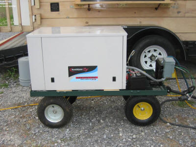 This Generator is for sale. It is a little different than the photos show in that the cheap pneumatic tires have been replaced with industrial castors and, of course, it shows a bit more wear and tear. This is the quietest generator of its size on the market. Leave it mounted on the cart and use it for stuff like home standby power or take it off and mount it in your RV. It is wired to supply 120/240 volts for standby power service. It can be rewired (I can do it for you if you like) for 120 volt only service for RV use or if you only need 120 volts. As you can see in this photo, the generator is set up to draw fuel from outboard motor fuel tanks. That way one doesn't have to mess with gas cans and pouring gasoline. Just unhook one tank when it's empty and connect another. This generator comes with three such tanks. $1000.00Location: Tellico Plains Shippable: NO. I will deliver within a 50 mile radius of Tellico Plains for an additional $100. I have a lift-gate truck so unloading will be no problem. Note: Needs new cranking battery. It comes with a paper copy of the owner's manual and a PDF of the service manual. Mobil 1 oil used exclusively. Terms: I deal only in cash or through a friend, PayPal. I do not and will not have a PayPal account so my friend handles that for me. For items that have to be picked up, cash is the preferable form of payment. No certified checks or other instruments accepted. Payment must be made in full before the item can be moved. Items sold as-is, where-is. No warranty expressed or implied. You may examine the item as much as you like and may have an expert examine it for defects. But once you buy it, it's yours with no warranty. First come, first served - the first person with the cash gets the goodies. If you want the item but cannot immediately come up with the cash, a deposit ($200 in this case) will hold the item for one week (7 days). The deposit is non-refundable. The deposit can be made through my friend's PayPal account or you can bring it to me. I have a bad back and bad knees so I will be of little help in loading this item. Plan on bringing a friend. I have hand trucks, dollies and other moving equipment; I simply cannot operate them anymore.