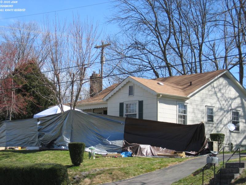 | Mike, Carla and "Worm" (Dave), the John G's crew beside the monsterized house. |