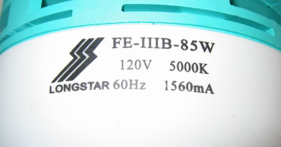 Purchased from BuyLighting.com.  A big honking 85 watts,
