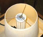 Next, we simply set the lamp shade on the jar lid.  If one wanted to be fancy, a bit of lamp all-thread could be attached but I chose to use a dab of RTV, topped by the original shade nut.
