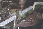 | Welding on the slide guides. The guide material is 1/4" key stock. |