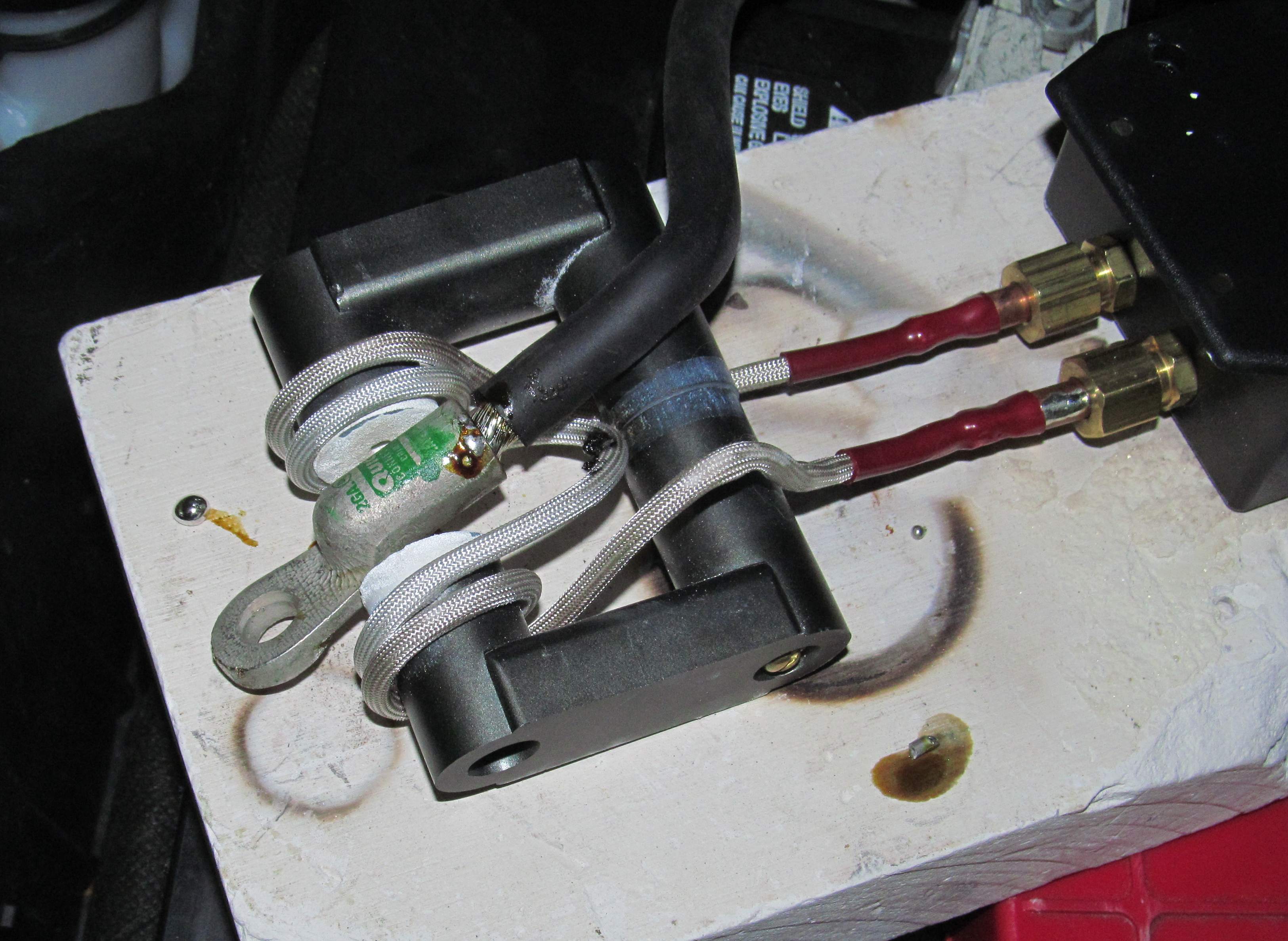 Here is a close-up of the current sensor with both the factory cable and the #2 cable passing through it. | ||||||||||||