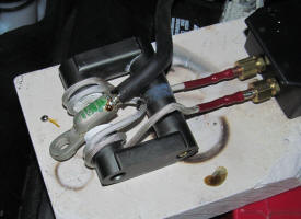 When the heater is turned on, there is no noise, no sparks and no flame. In fact, you might notice from the photo above that I'm doing the work - quite safely - on top of the battery. The white stuff is a refractory board that is heat proof. |