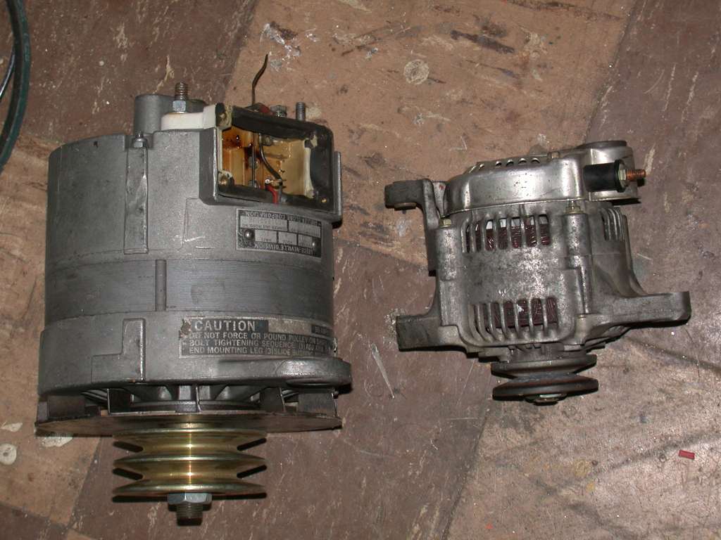 The photo at left graphically shows the difference between an automotive alternator and a heavy duty one designed for continuous operation.
