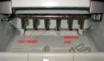 ![]() Several features are identified in this photo. Note that the drain plug is left hand threaded. The silicone rubber gasket is easily damaged so take care to turn the plug the correct direction. |