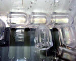![]() A photo of ice made a couple hours later after the water had been tumbled out of the tray and back to the reservoir. The water has absorbed some air which outgases as the ice freezes. It makes these strikingly pretty tubules in the otherwise clear ice. |
