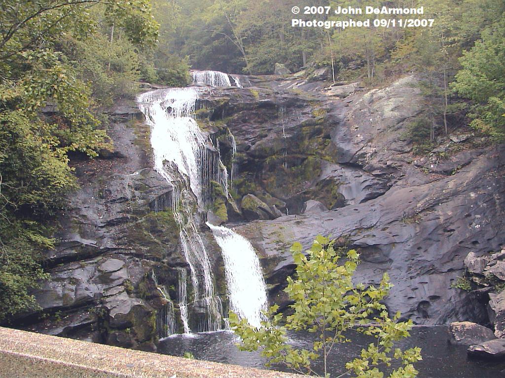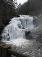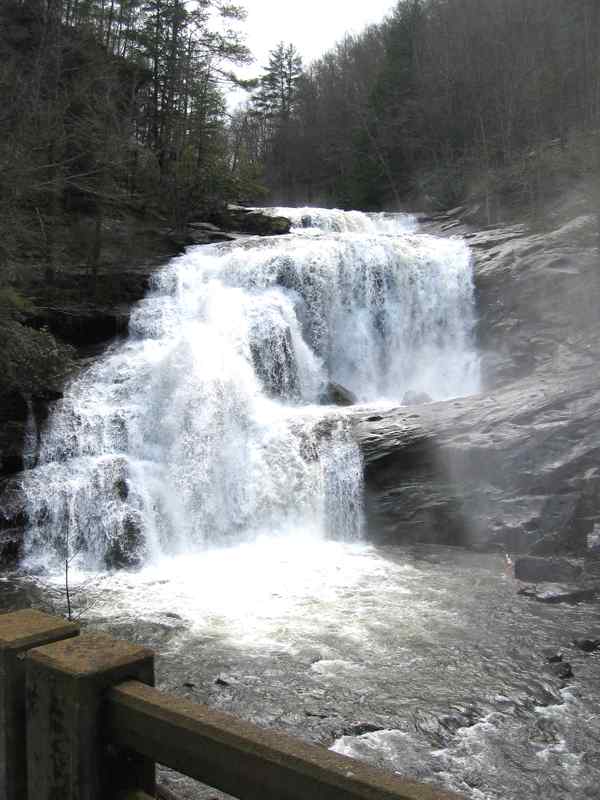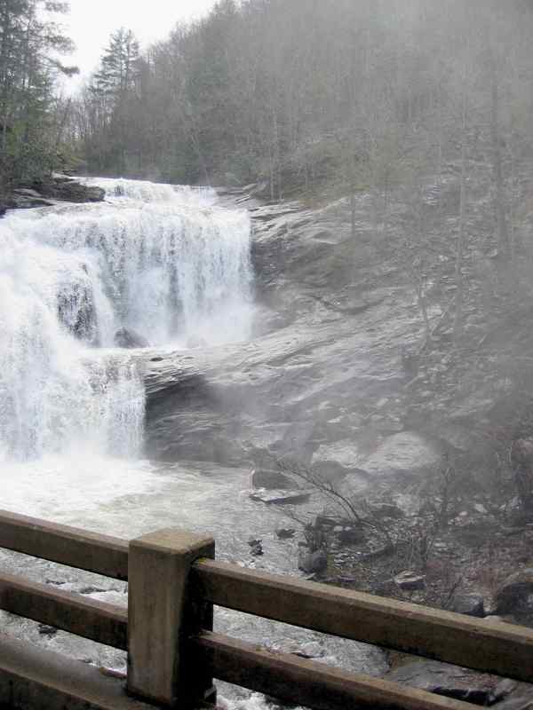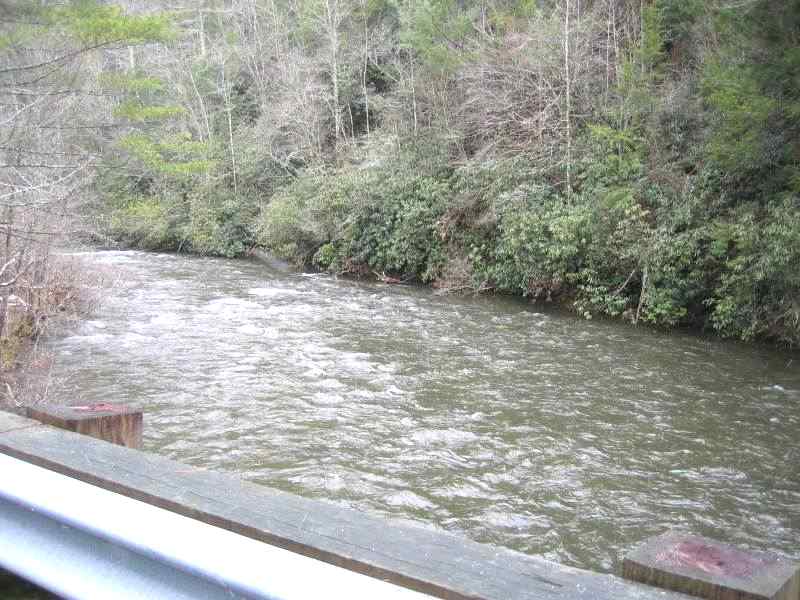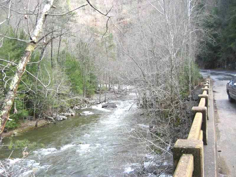 especially after a heavy rain, as when these photos were taken. This is a nice picnic area at the top of the falls. The climb up is fairly steep, though it is paved. These photos were taken on a sunny snowy day, some of my favorite camping weather! I've left the photo files under the thumbnails at full size so that you can print off a quality print if you desire. You may use these photos for private, non-commercial purposes. Update 09/14/07 - The drought of 2007 has broken. It started raining last night at dusk and has been raining for 24 hours. We'd almost forgotten what rain looked like. This has been the driest season in memory here. The Tellico River was being known as the Tellico Creek. Bald River was almost a memory. Look at this photo taken a few days ago: