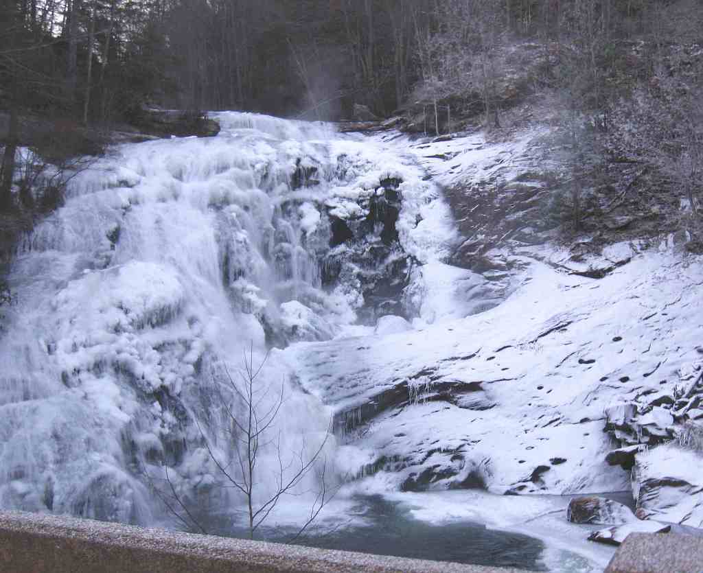 This photo was taken on Feb 5th, 2009 after a light snow and several days of single digit temperatures. It is a exquisite photo of the falls when frozen. | ||||||