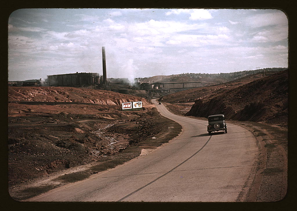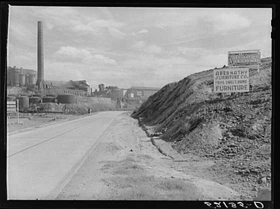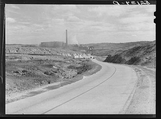 road between Copper Hill and Ducktown. The acid plant is over the hill